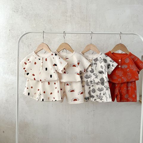 2025 nuevo conjunto de ropa de algodón para bebés, niñas y niños, camiseta de manga corta para bebés, pantalones cortos, pijamas informales de algodón