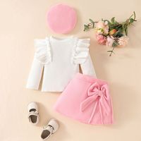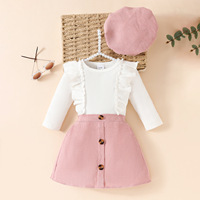 Bebé niña otoño manga larga con volantes Top falda boina ropa traje