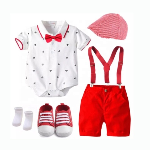 Traje de caballero para bebés a la moda, conjuntos de ropa para niños pequeños con sombrero, pantalones cortos, cinturón, lazo, zapatos y calcetines
